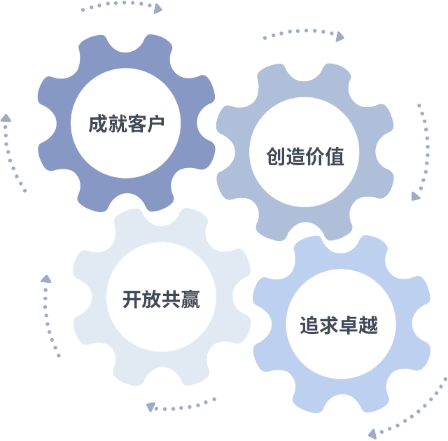 成就客户是一切决策的出发点,,,,创造价值是衡量所有工作的标准,,追求卓越是TVT体育 做事做人的态度,,,开放共赢是TVT体育 的格局也是最终的结果。。。。价值观的齿轮环环相扣,,推动着组织里的每个人不断向前。。